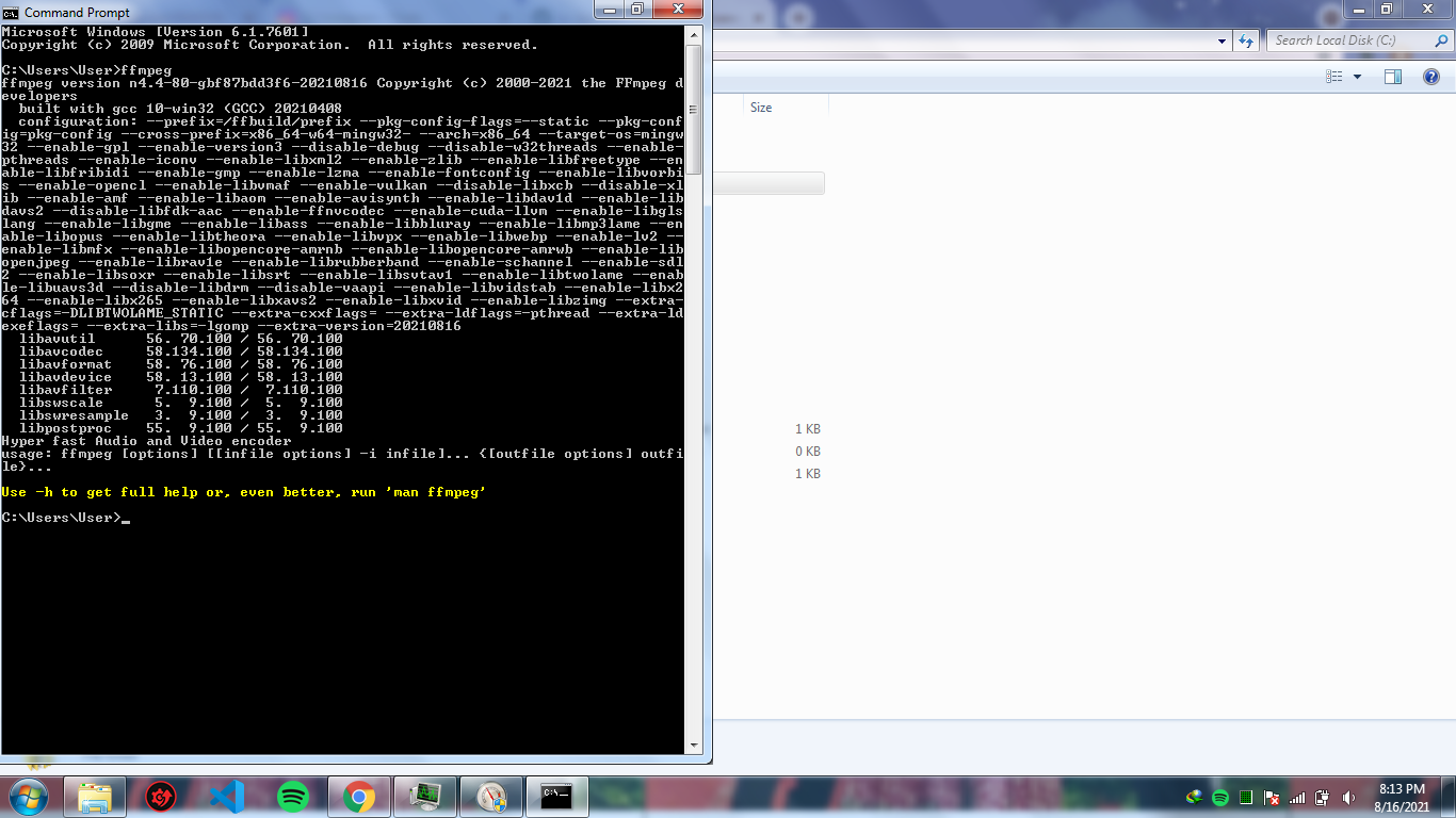 sudo apt install ffmpeg Setelah diinstal Ketik ini di Terminal ffmpeg Jika muncul berarti sudah terinstall dan sudah di path