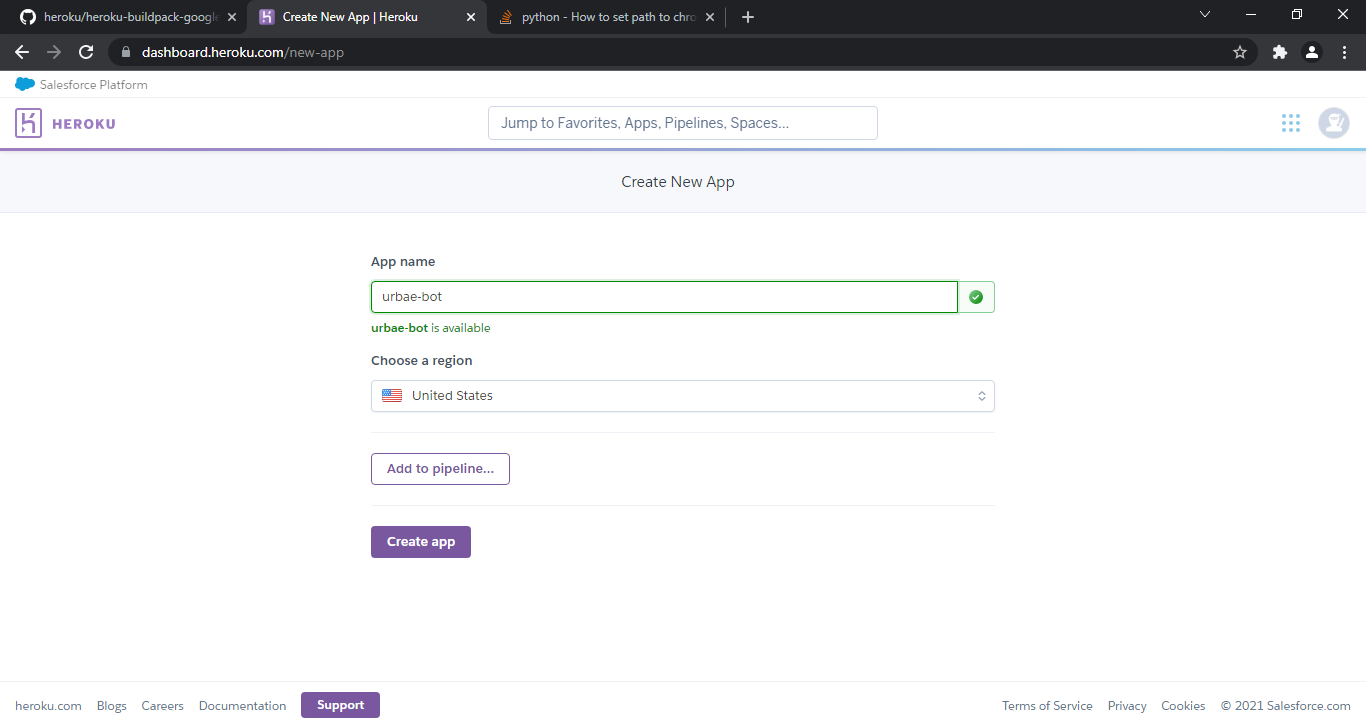 Create New App _ Heroku - Google Chrome 18_10_2021 11_10_19