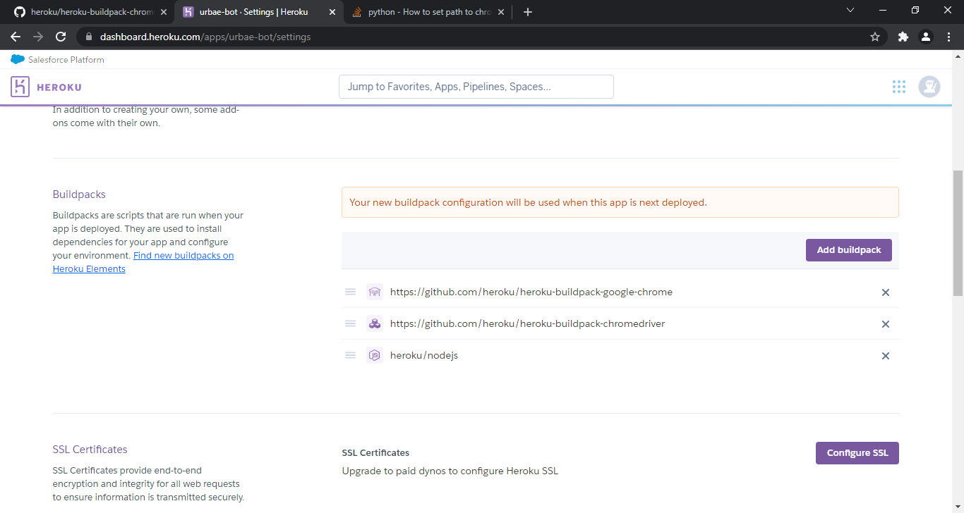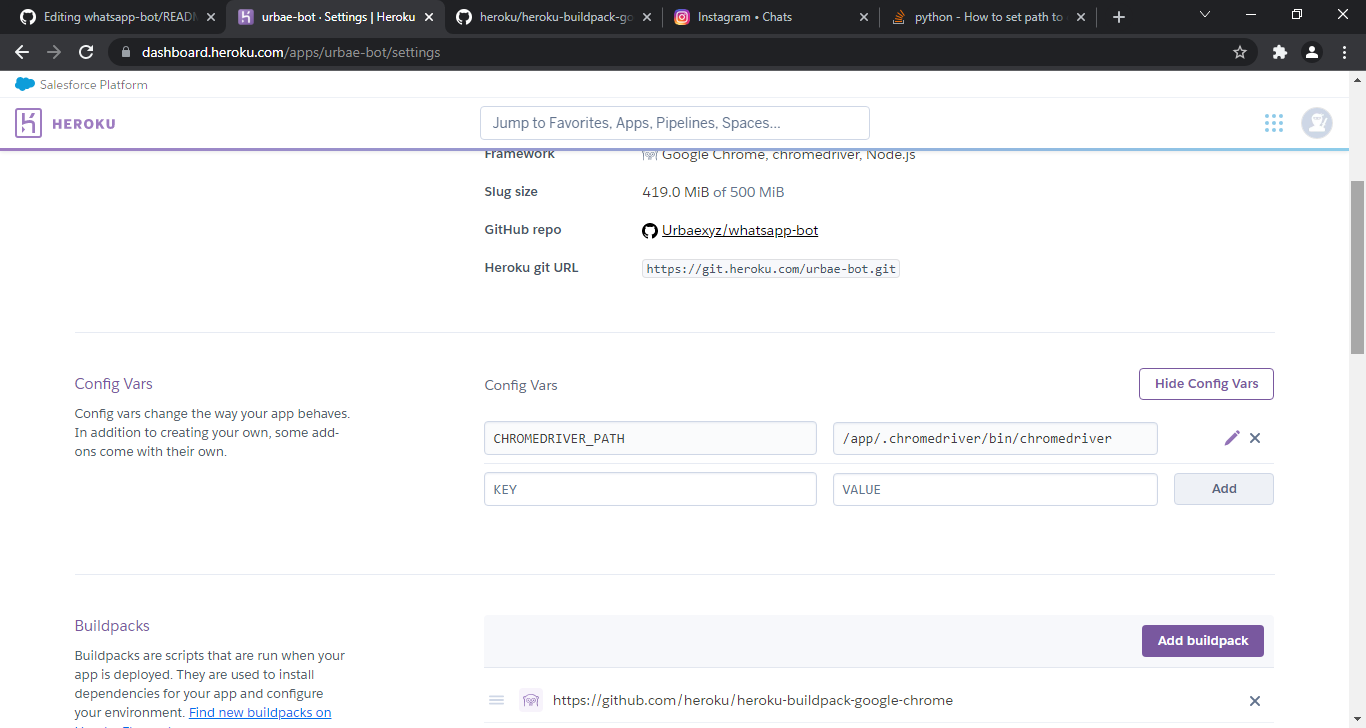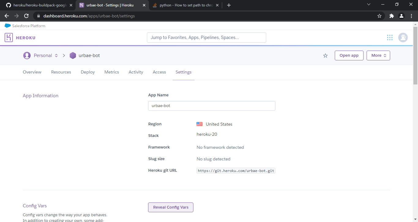 urbae-bot · Settings _ Heroku - Google Chrome 18_10_2021 11_19_37